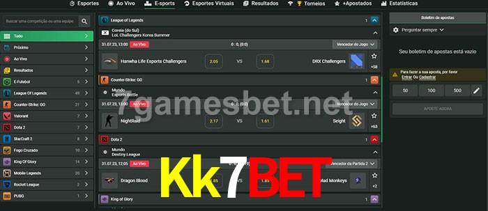 O Kk7Bet oferece uma grande seleção de opções de apostas em e-sports com probabilidades competitivas
